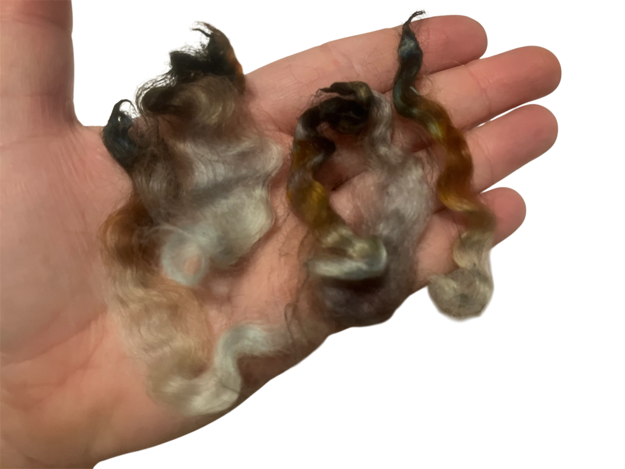 Longwool locks such as these are ideal for needle felting, wet felting, weaving accents, or any of a slew of spinning projects.