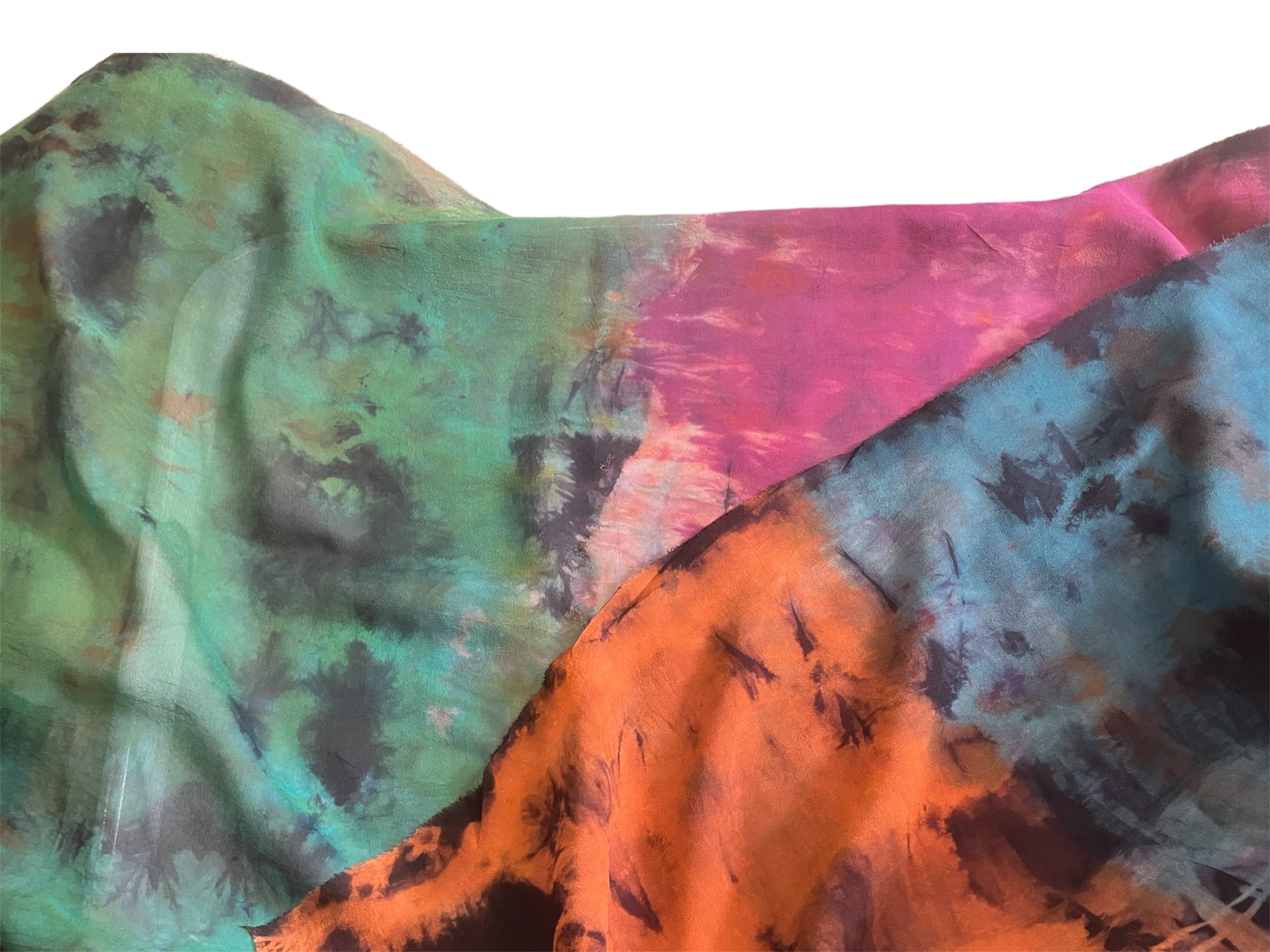 Silk chiffon is known for its strength, gorgeous drape, and sheer texture. It has a slightly crepey surface, which helps it “grab” fiber when felting, but is loosely woven enough to make the process straightforward.