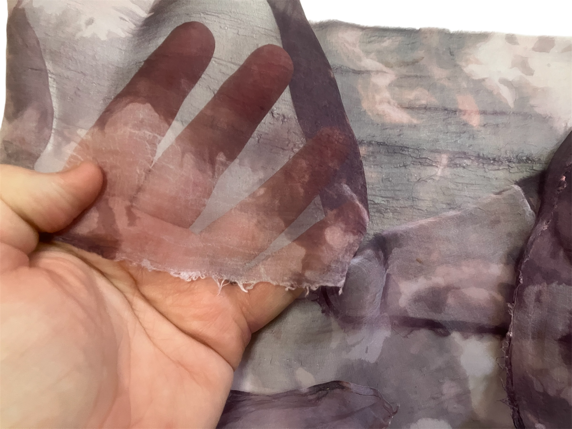 All of my nuno silks have unfinished edges. Some may have one or two selvedge edges but all have at least some raw edges. You can finish these by felting over them, rolling and stitching, or just leave them as-is for an extra rustic look.