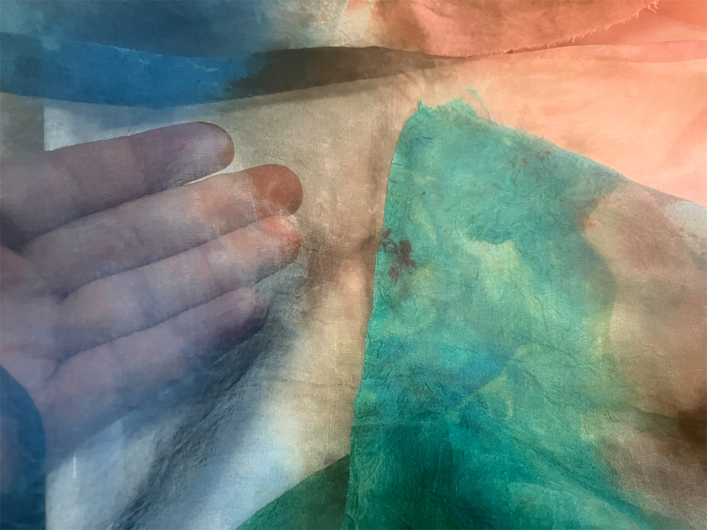 Silk organza is sheer and crisp, with a stiffer texture than other silks in this section. The loose weave helps the felting process, while the stiffness makes it stay put just a smidge better while laying out designs.