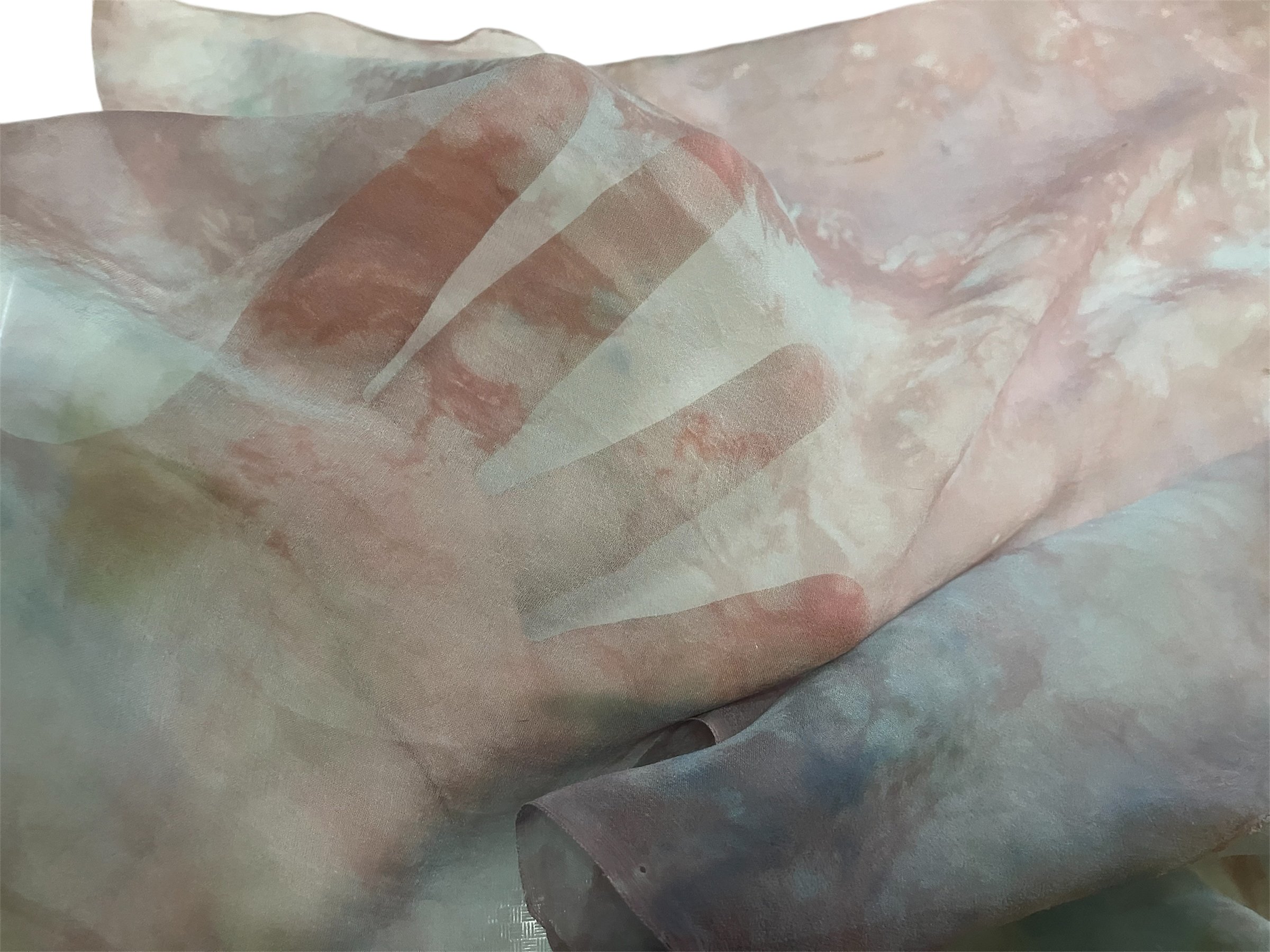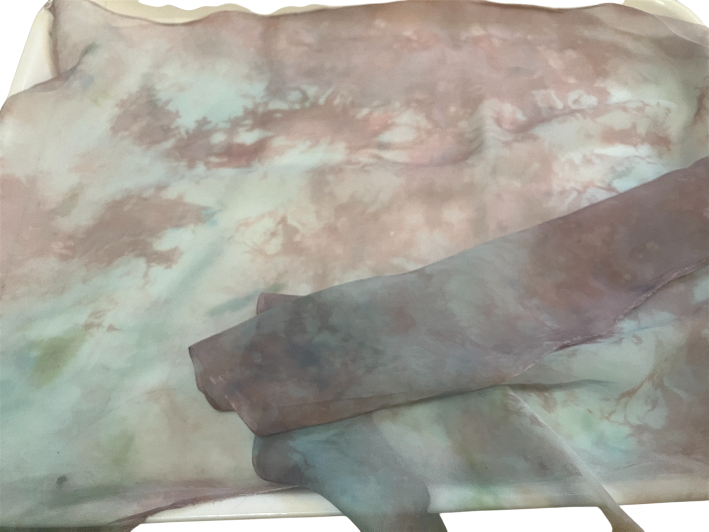 Silk gauze is a super floaty and sheer fabric, eager to grab onto fiber and the lightest-weight fabric I carry.