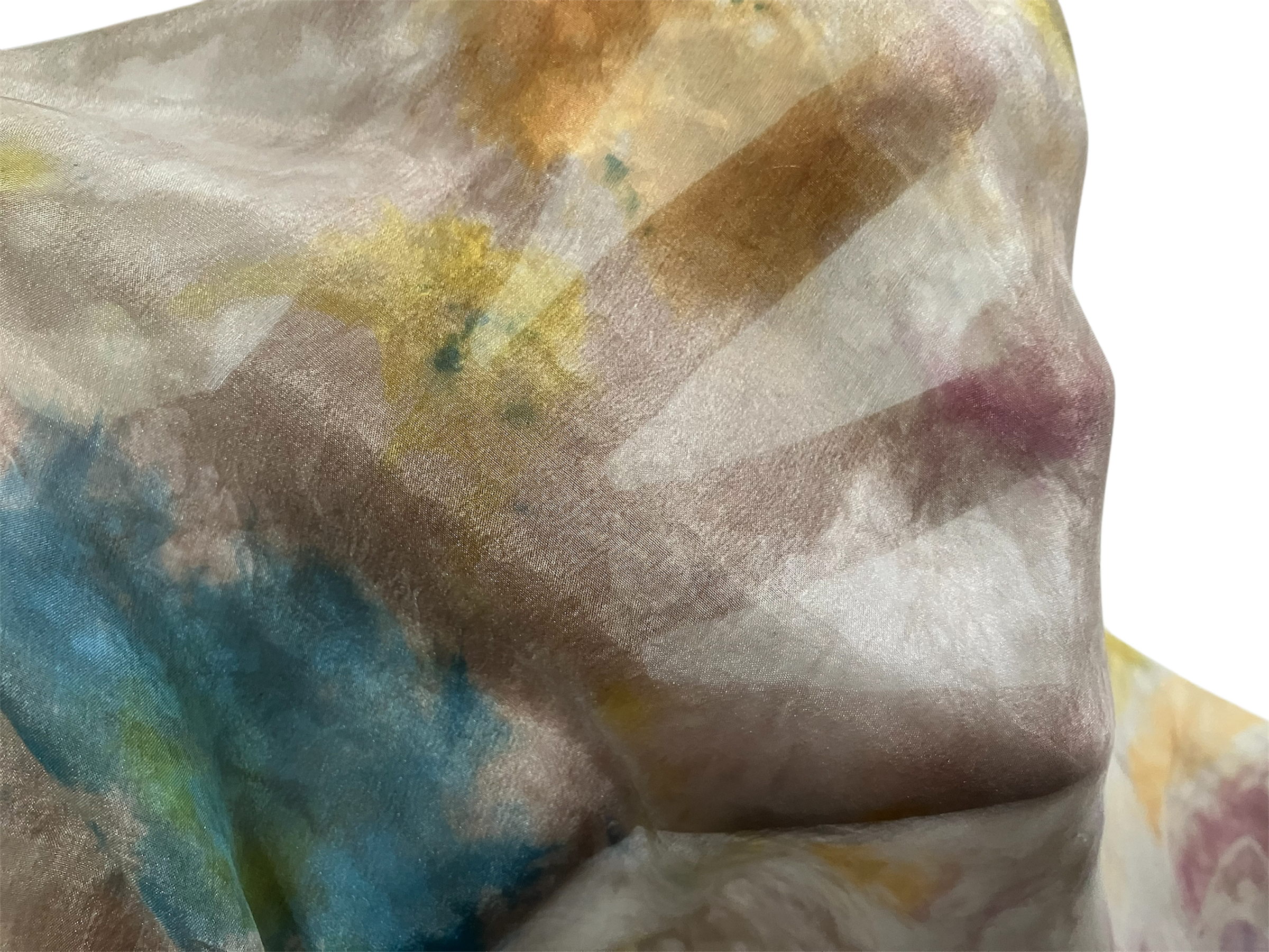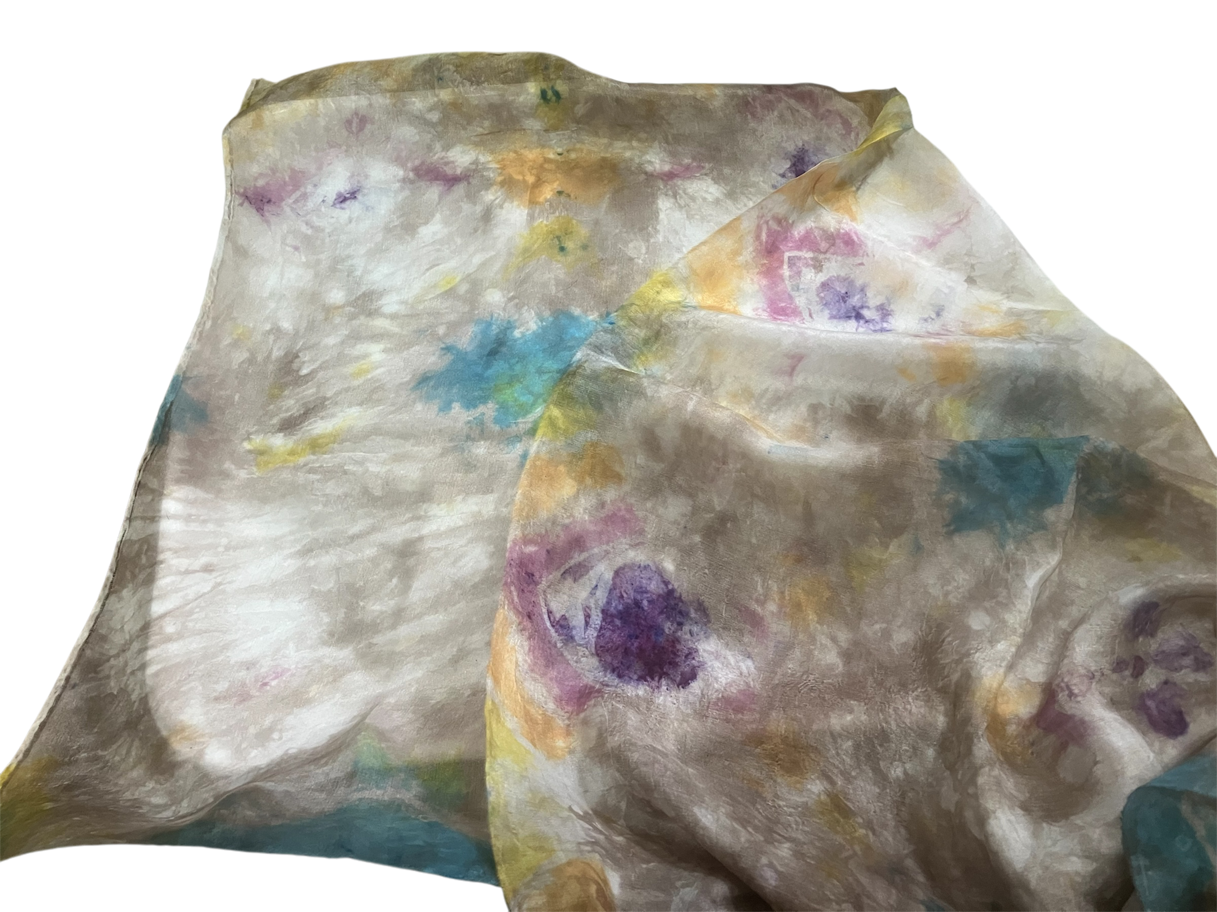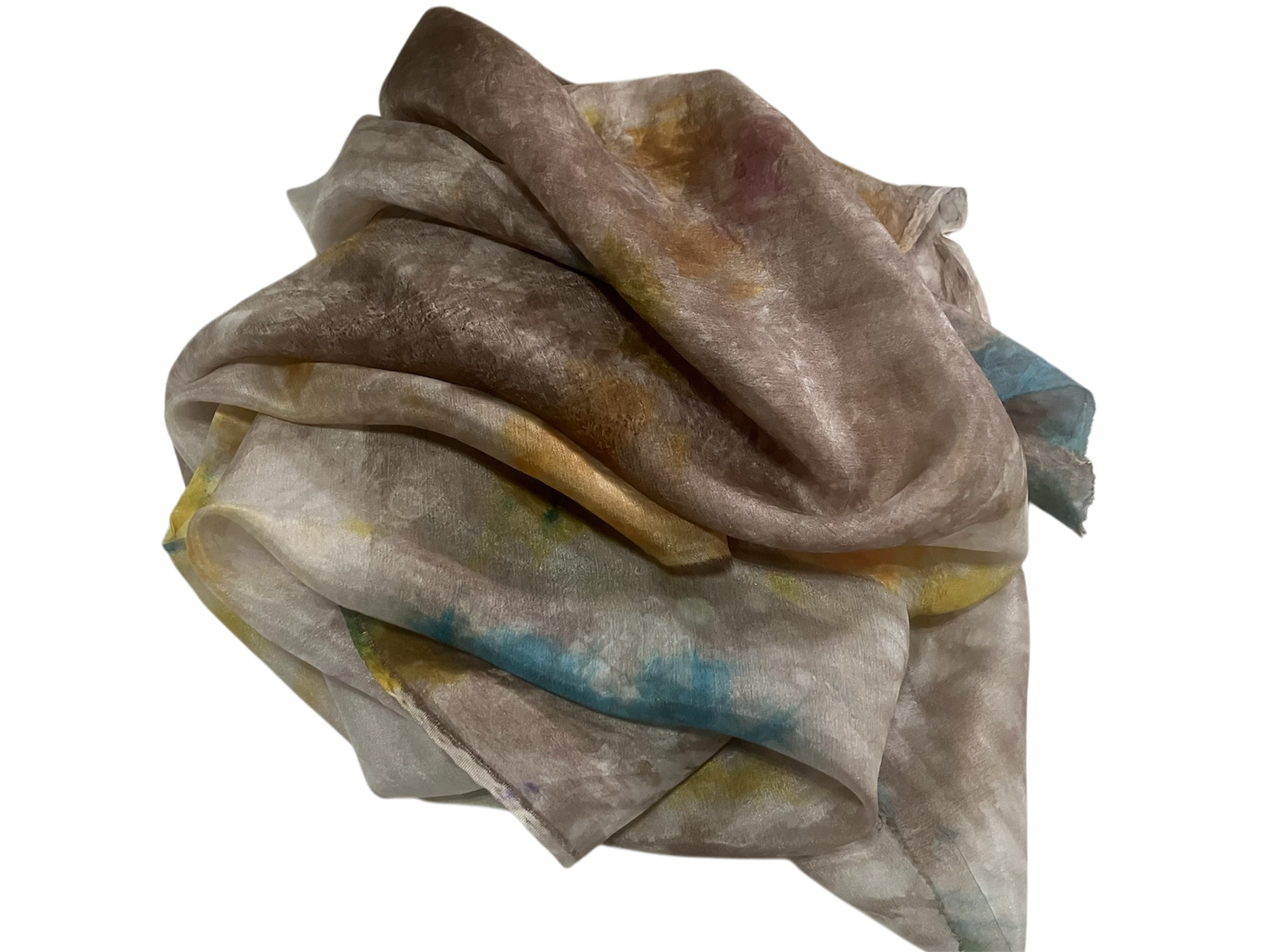 This piece is a 12×44” habotai scarf blank low-water-immersion dyed in shades of cobalt blue.